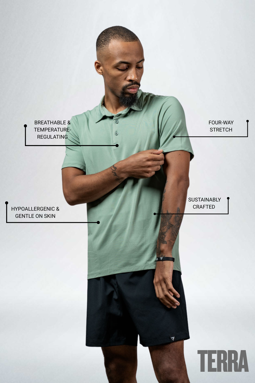 Engineered for comfort and mobility, the Terra Polo features a structured yet flexible fit that keeps you cool through movement, travel, or downtime. Whether it’s a day at the office, a round of golf, or recovery after a workout, this piece stands out for its versatility and refined simplicity.