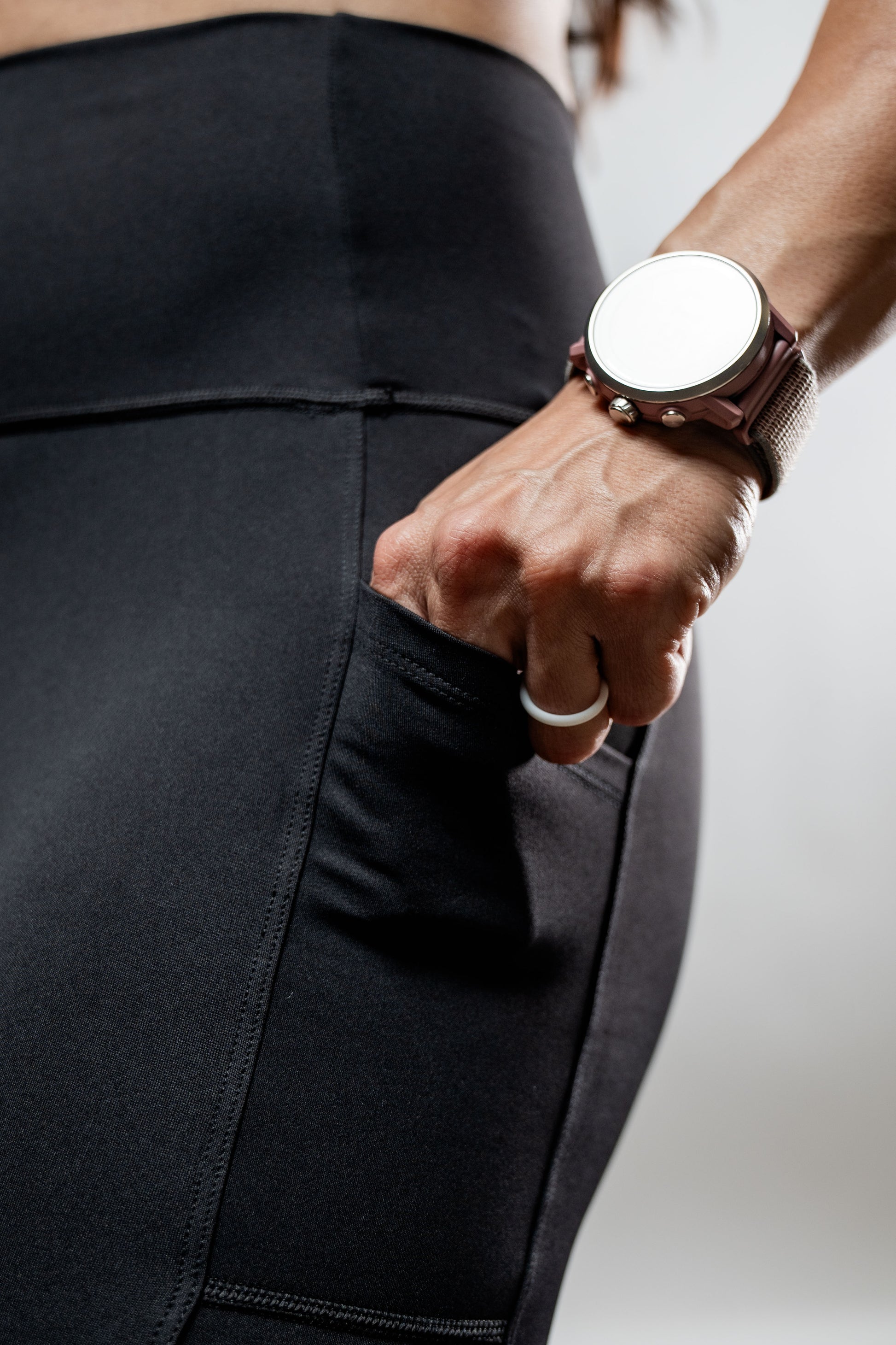 Crafted from our signature breathable, sweat-wicking fabric, they deliver a smooth, second-skin feel with 4-way stretch to support every stride, stretch, or sprint. Two side-leg pockets offer convenient, bounce-free storage for your essentials — from your phone to fuel — keeping you hands-free and focused on the movement ahead.