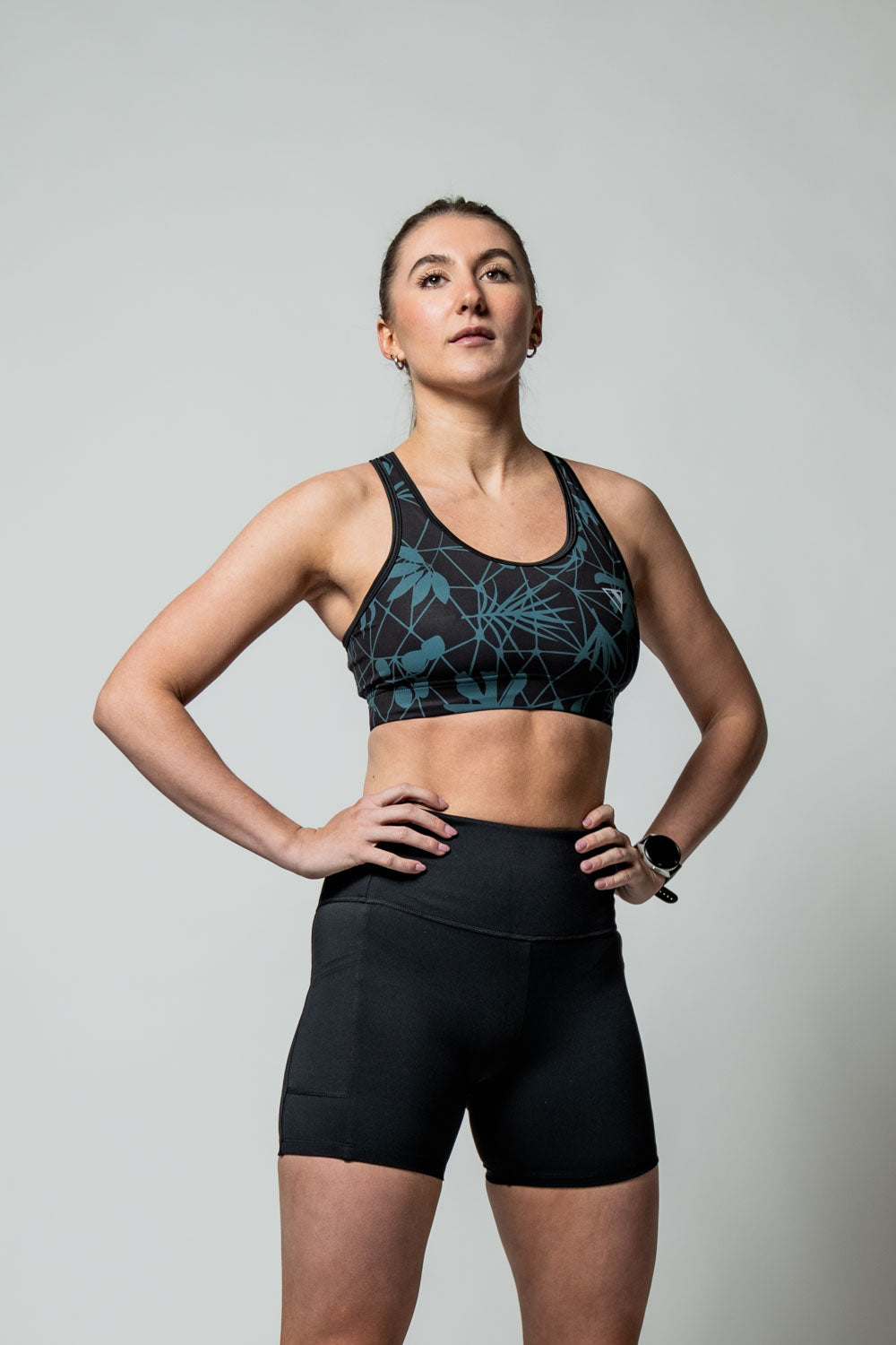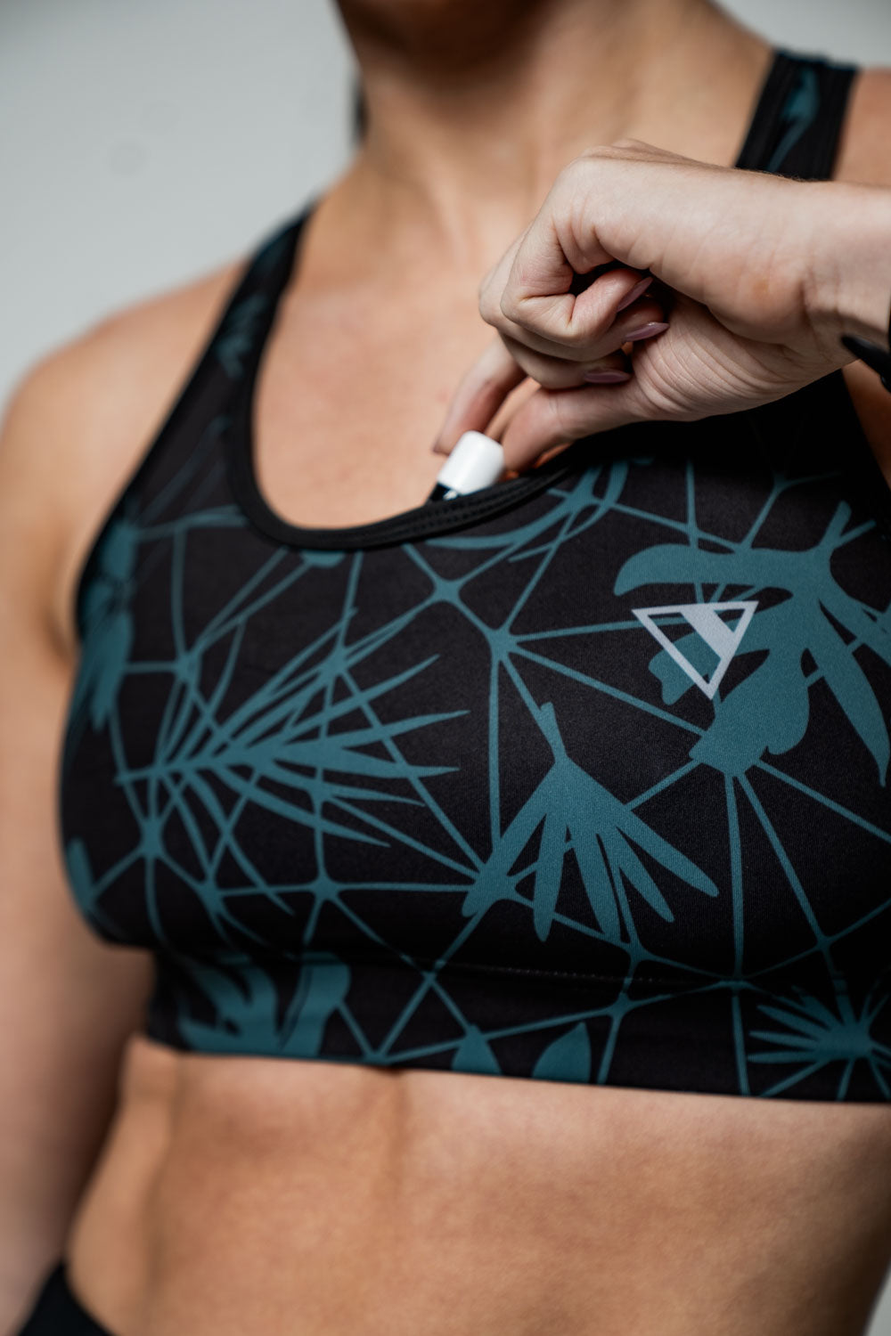 The bra features a built-in front pocket, offering convenient storage for small essentials while you’re on the move. A broad, comfort-focused neckline and shoulder design helps distribute support evenly, reducing pressure and enhancing comfort during longer efforts.