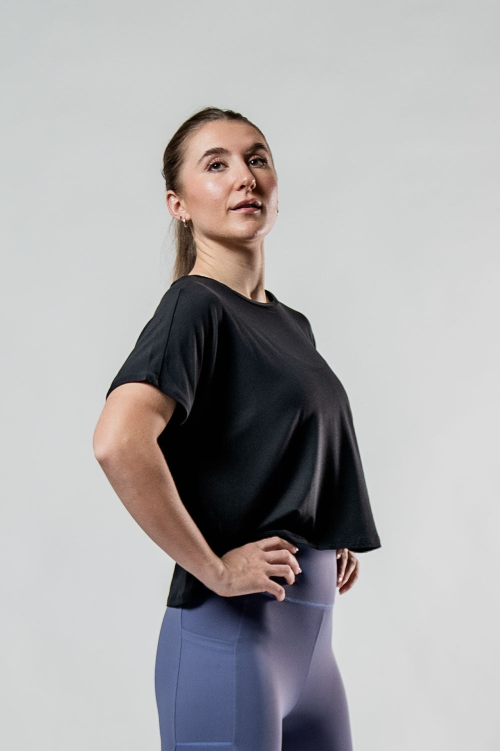 - Flowy cropped design — relaxed drape for comfort and freedom of movement.