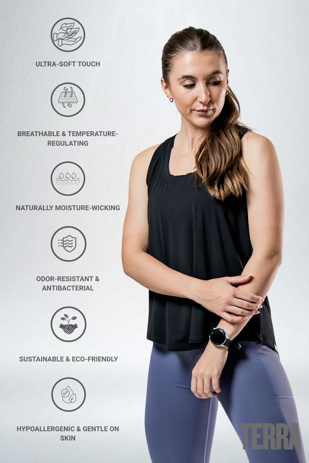 The Women’s Terra Halo Tank is designed for women who move through their day with intention. Made from our soft, breathable TerraFlex bamboo-blend fabric, this tank offers the perfect balance of comfort, flow, and performance.
