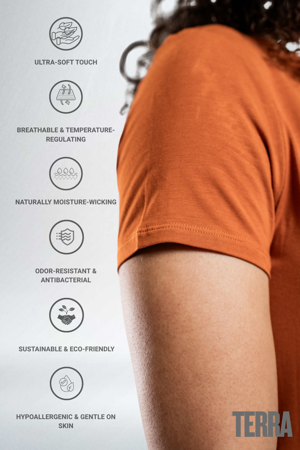 - TerraFlex bamboo-blend fabric — ultra-soft, breathable, and moisture-wicking for everyday comfort.