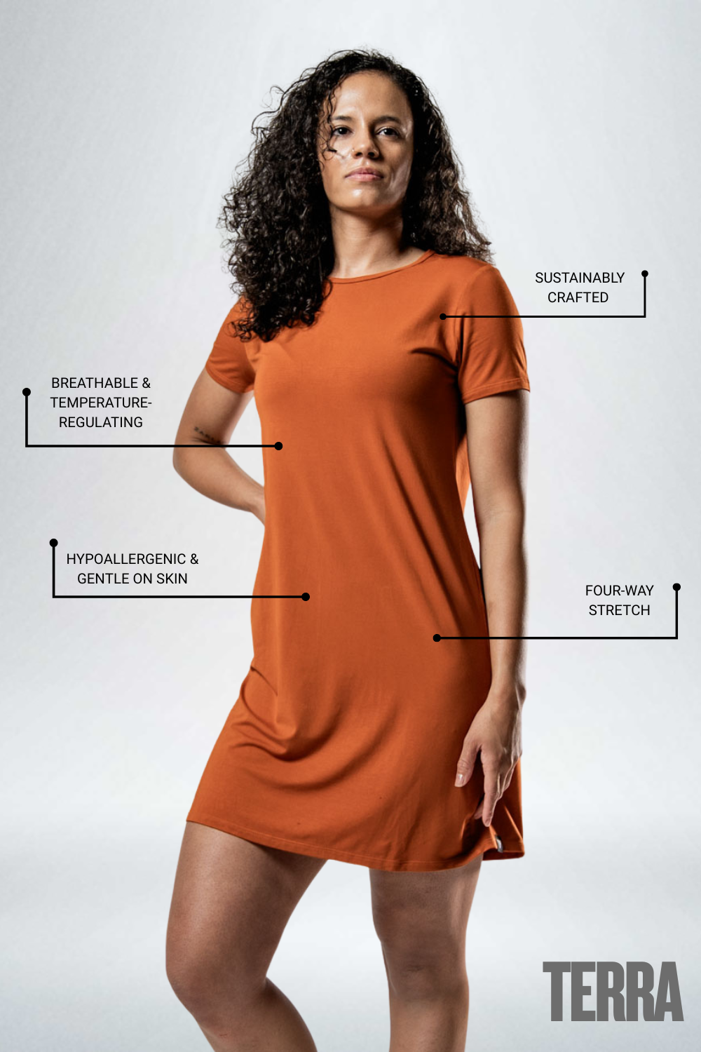 The Women’s Terra Motion Dress redefines comfort and versatility with a sleek, shirt-dress silhouette designed for motion and style. Crafted from our lightweight TerraFlex bamboo-blend fabric, this dress delivers a perfect blend of softness, stretch, and breathability — built for women on the go.